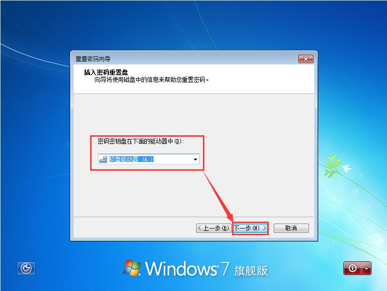 5銆侀夋嫨瀵嗙爜閲嶇疆鐩樻墍鍦ㄧ殑浣嶇疆锛岀偣“涓嬩竴姝”锛屽涓嬪浘